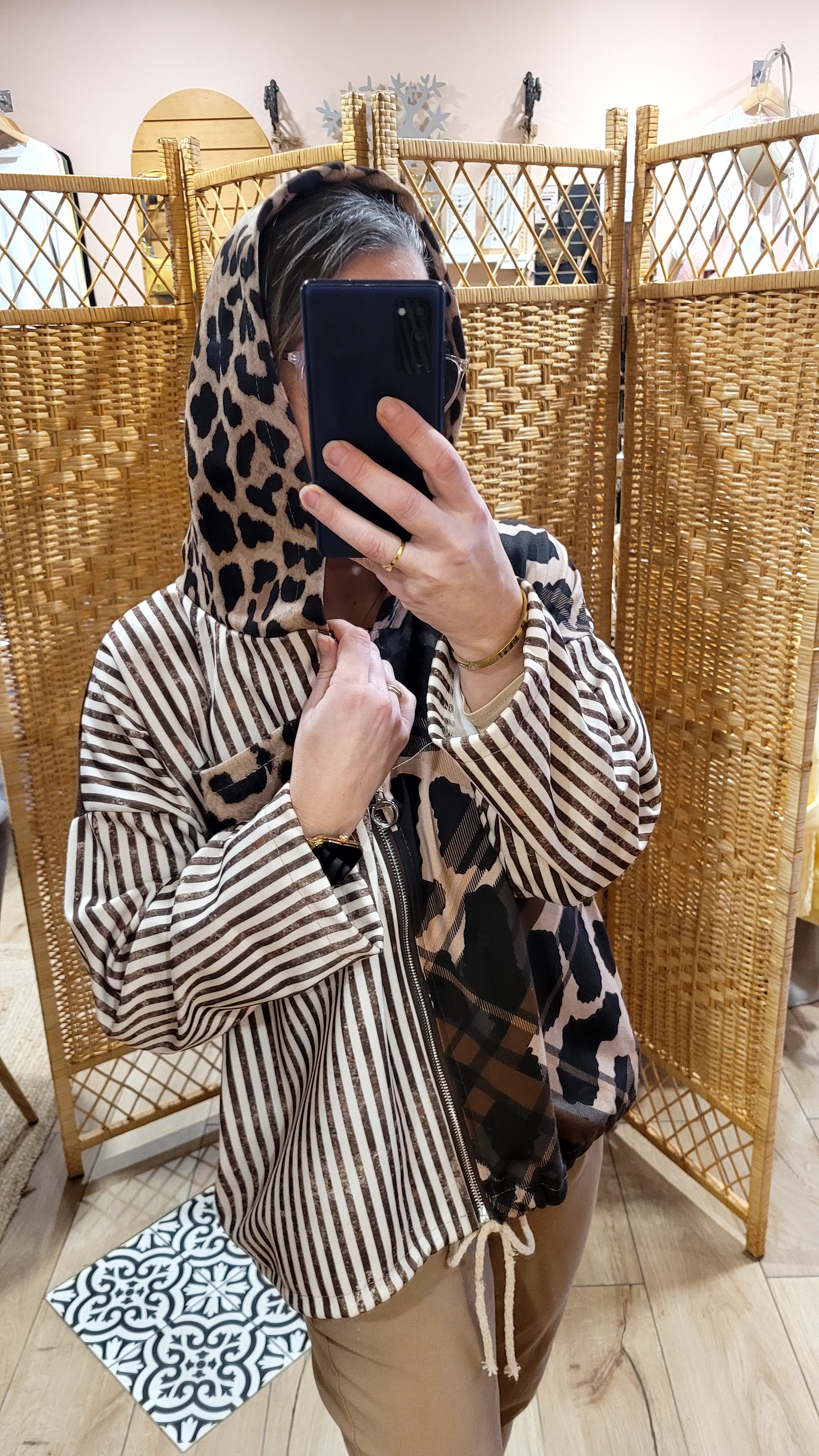 Découvrez notre Blouson Rayures polyvalent avec sa veste triple matière, fermeture zippée et lien à nouer pour un bas de blouson ajustable. Taille unique jusqu'au 42 pour un style impeccable et confortable. Parfait pour toutes les occasions, offrez-vous le maintenant.