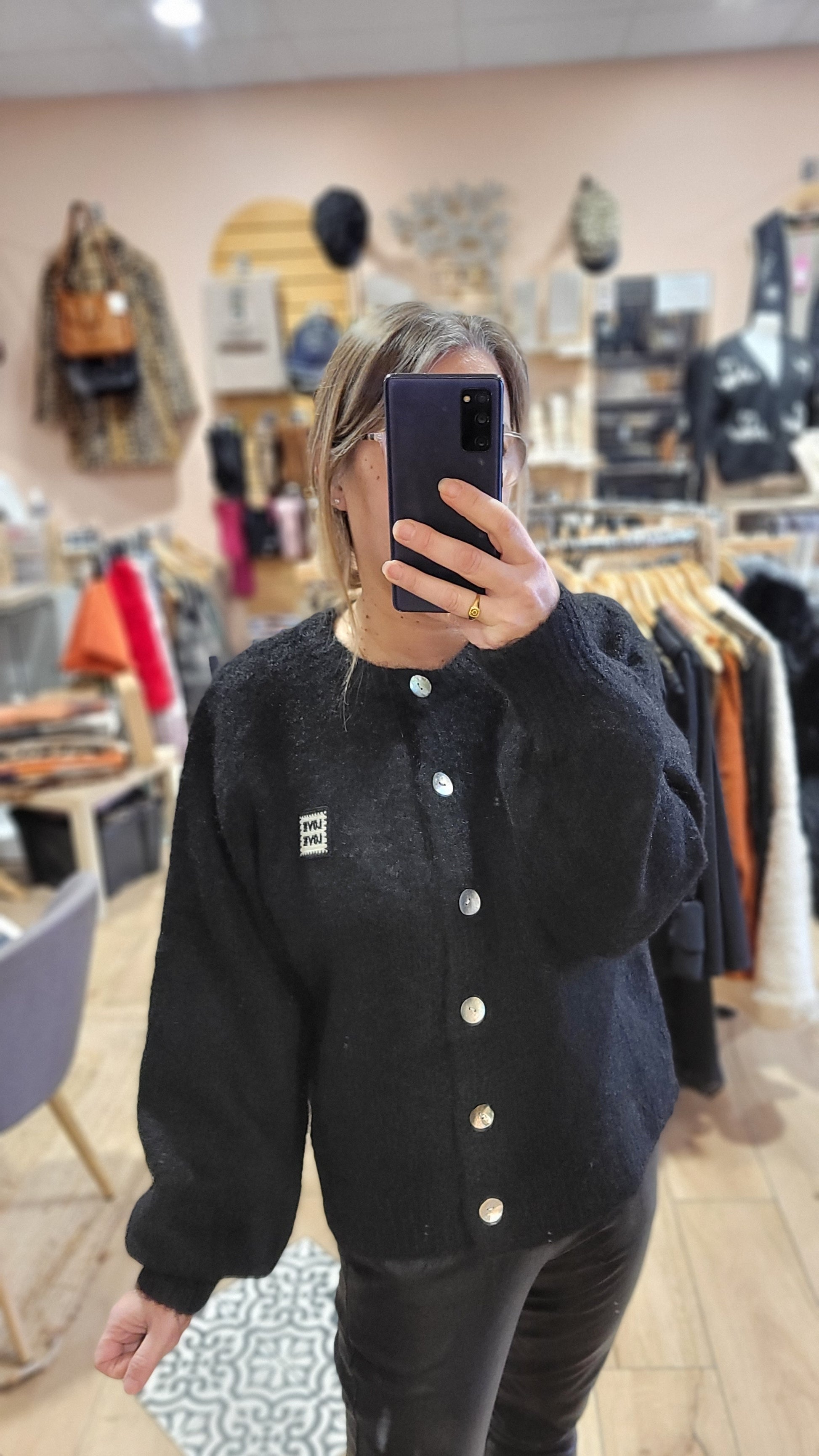 Le Gilet Camille vous offre un look chic et tendance grâce à sa coupe boutonnée et sa taille unique jusqu'au 42/44. Avec son étiquette "love", il vous apporte une touche d'amour et de positivité à votre tenue. Restez élégante et rayonnez avec le Gilet Camille.