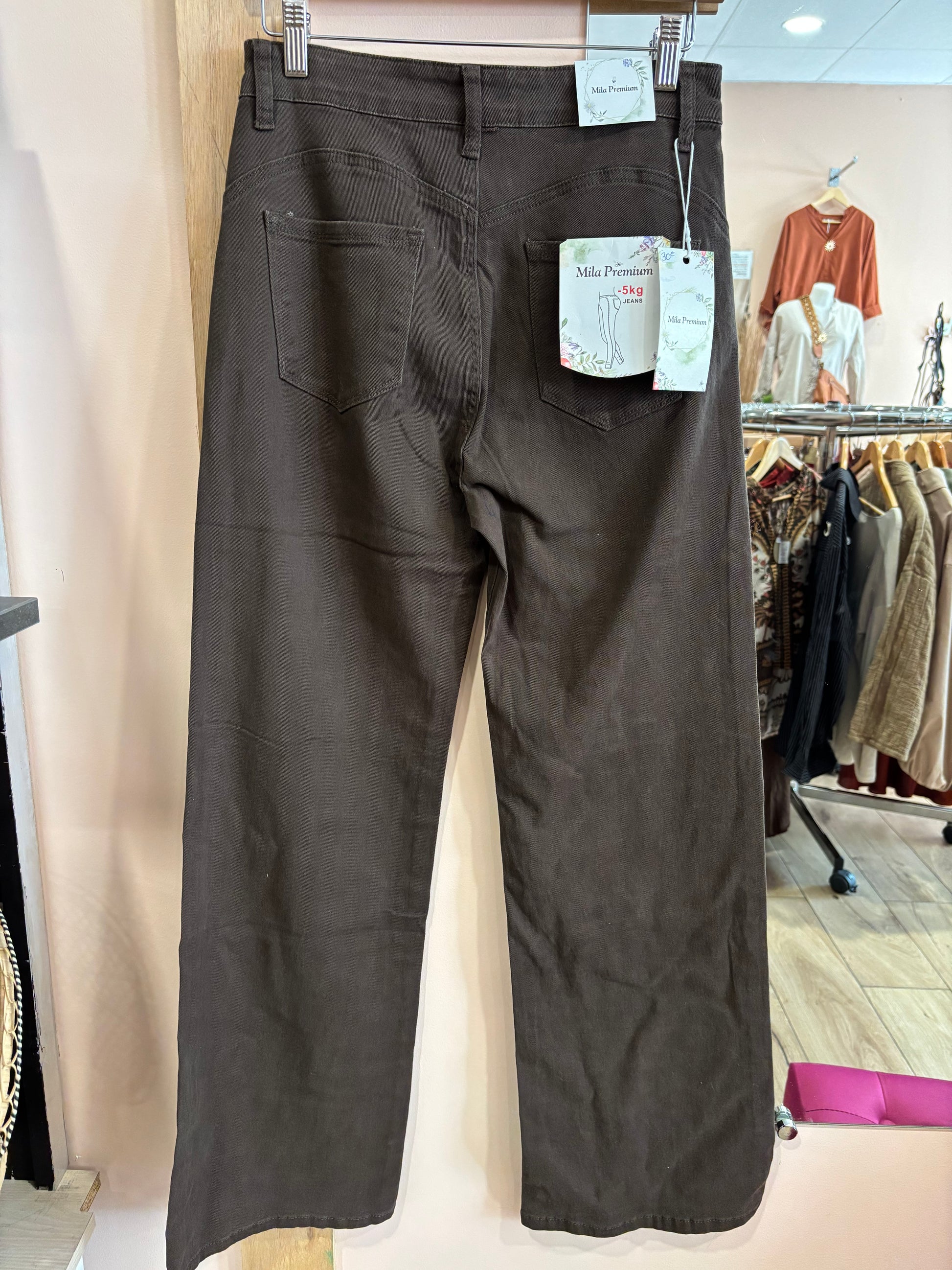 Découvrez notre dernier modèle de jean taille haute coupe droite en couleur chocolat, vous offrant un effet amincissant de 5 kg. Sa coupe Wide leg accentue votre silhouette et son design de qualité vous assure un confort optimal. Parfait pour un style élégant et intemporel.