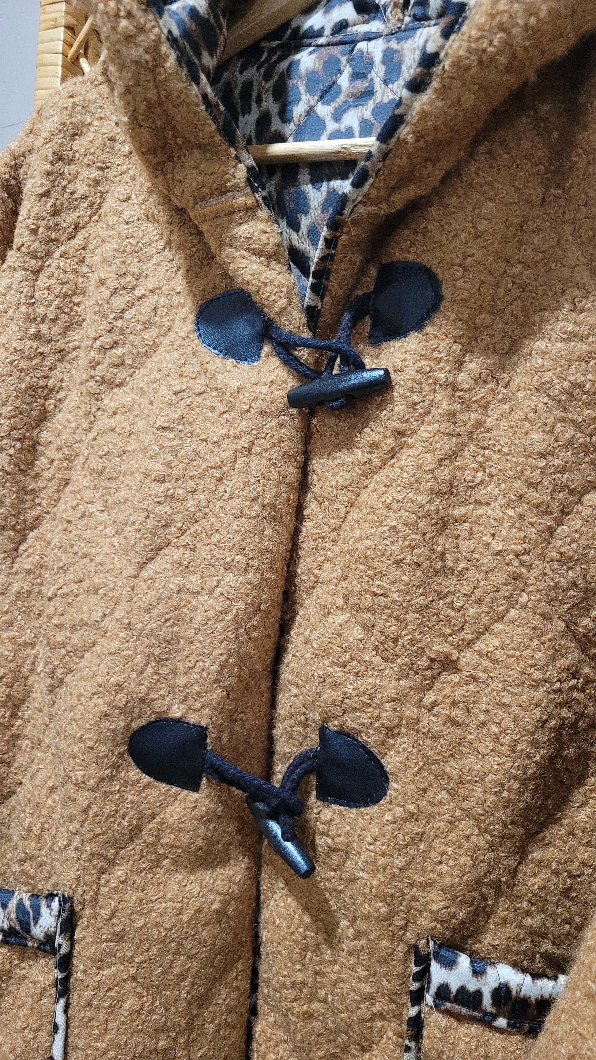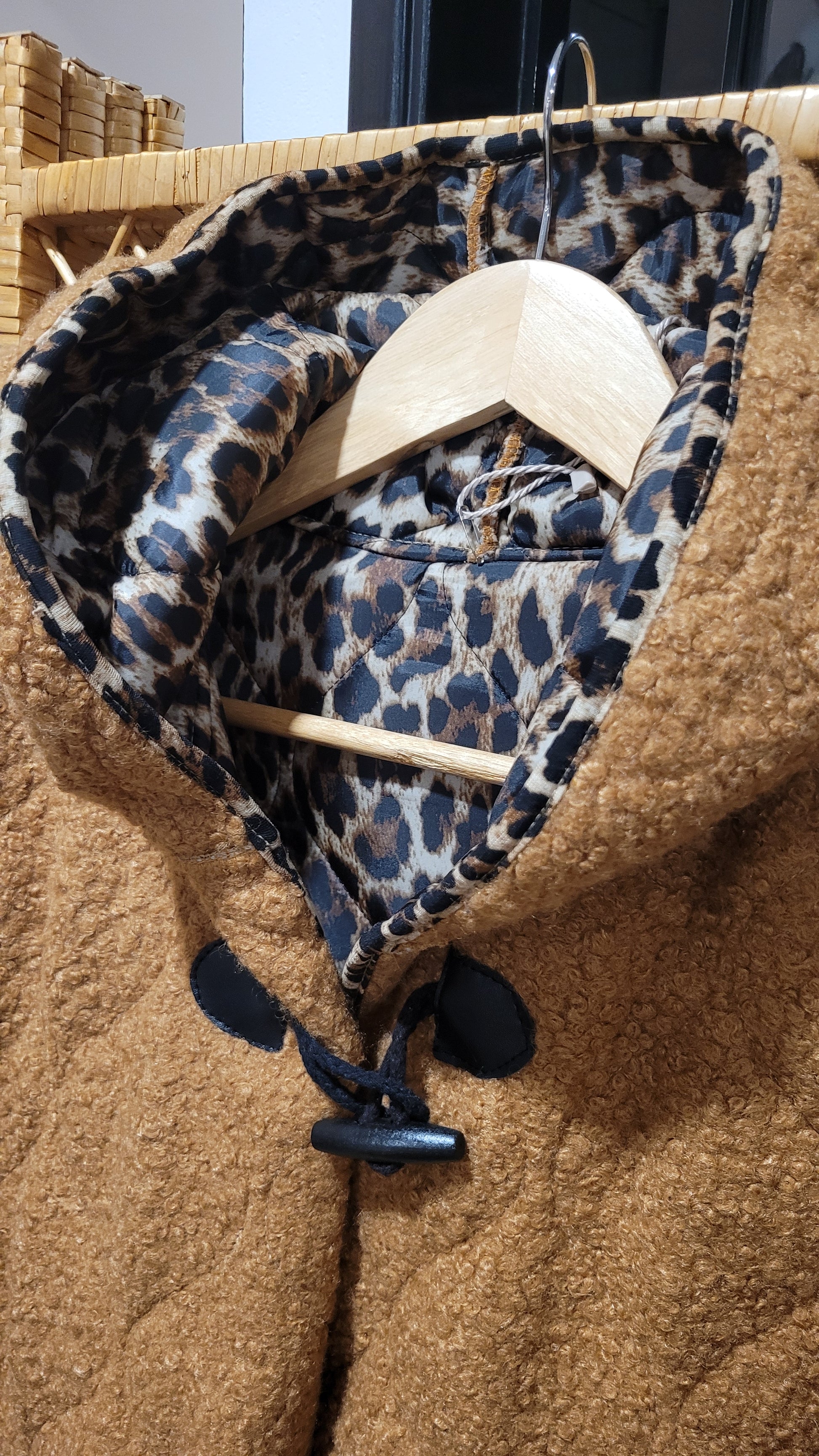 Faites sensation avec le manteau Fiona en bouclette ! Doublé léopard, il s'adapte à toutes les tailles jusqu'au 44/46. Protégez-vous du froid avec sa capuche et ses poches pratiques. Fermez-le facilement avec ses boutons à cordelette. Parfait pour un look sauvage et tendance.
