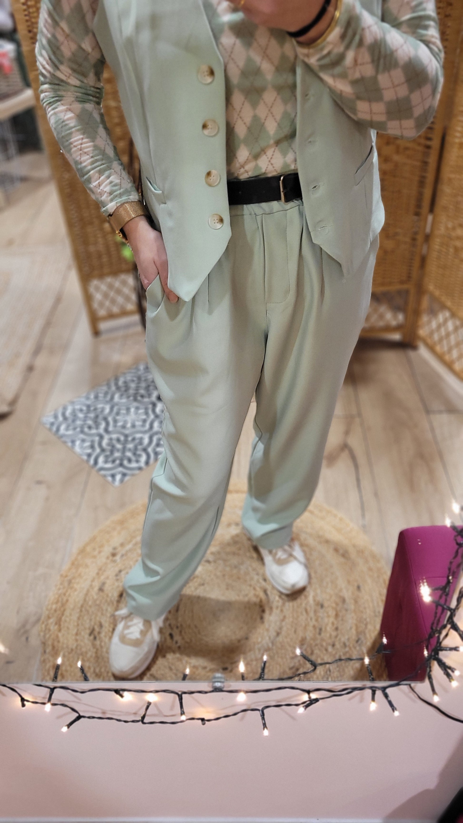 Découvrez le Pantalon Louisa, un incontournable qui épouse toutes les silhouettes grâce à sa ceinture ajustable et sa taille élastique. Confortable et chic, ce pantalon taille unique jusqu'au 44 allie style et praticité. Portez-le avec fierté et laissez-vous séduire par son élégance décontractée !