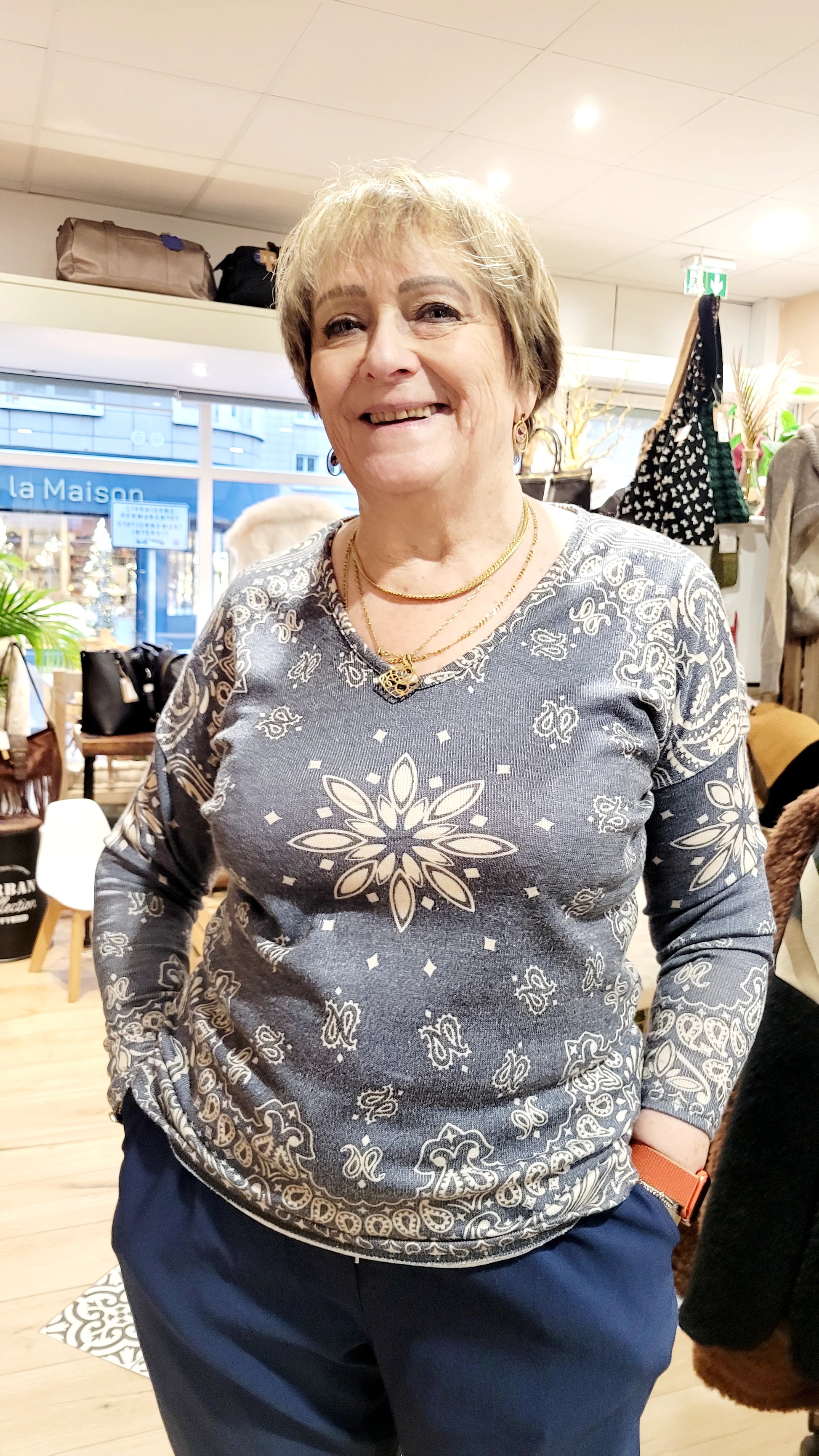 Ce pull en taille unique jusqu'au 44 présente des motifs arabesques élégants et un col V flatteur. Avec sa coupe fine, il convient à toutes les occasions, que ce soit pour une sortie en ville ou une soirée chic. Restez au chaud et au top de la mode avec le Pull Émilie.