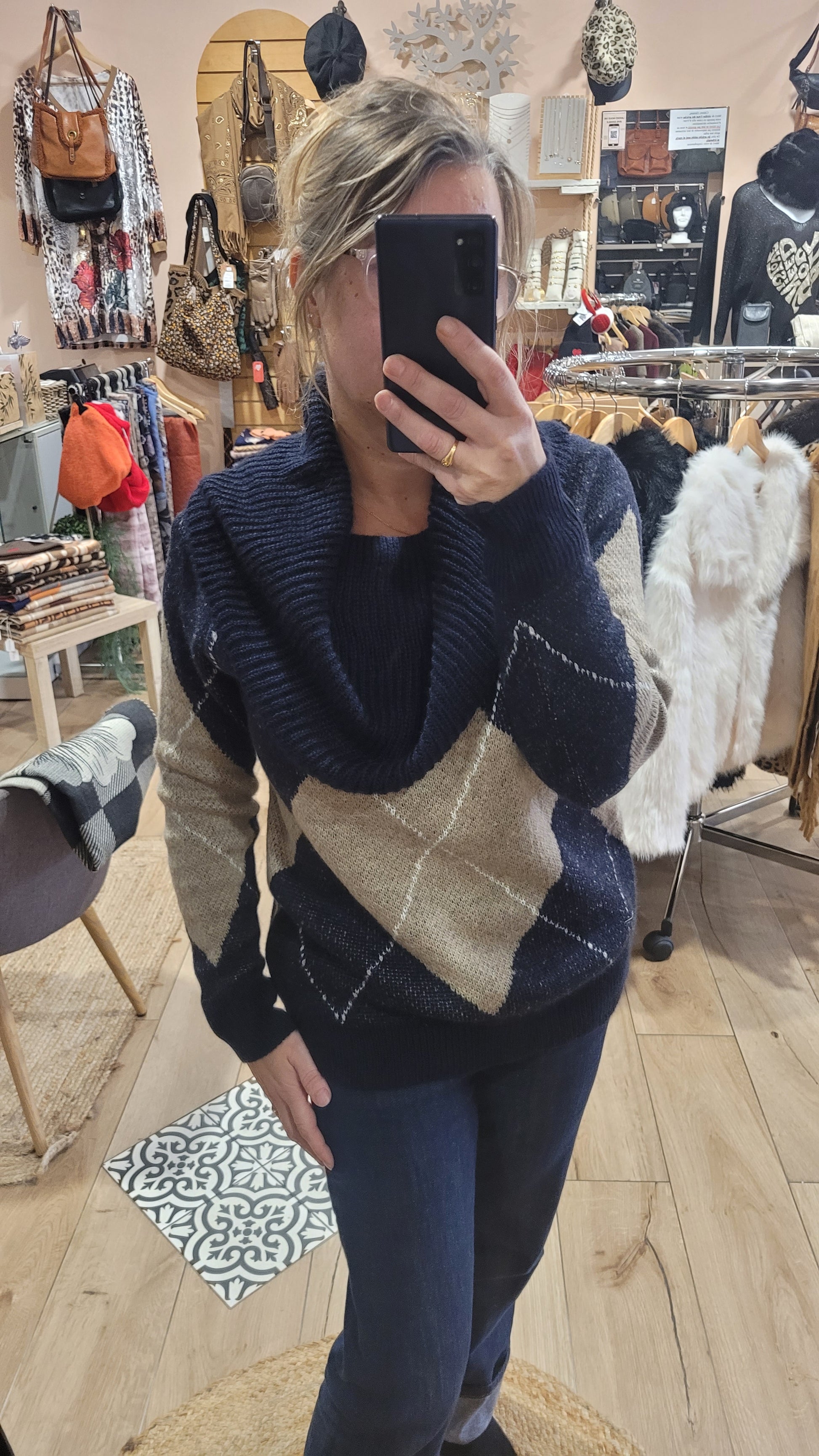 Affichez votre style avec le pull Jacquard. En taille unique jusqu'au 44, il offre un col bateau élégant et un motif jacquard raffiné. Fabriqué en doux tricot, il vous gardera au chaud tout en vous faisant briller. Commandez le vôtre dès maintenant.