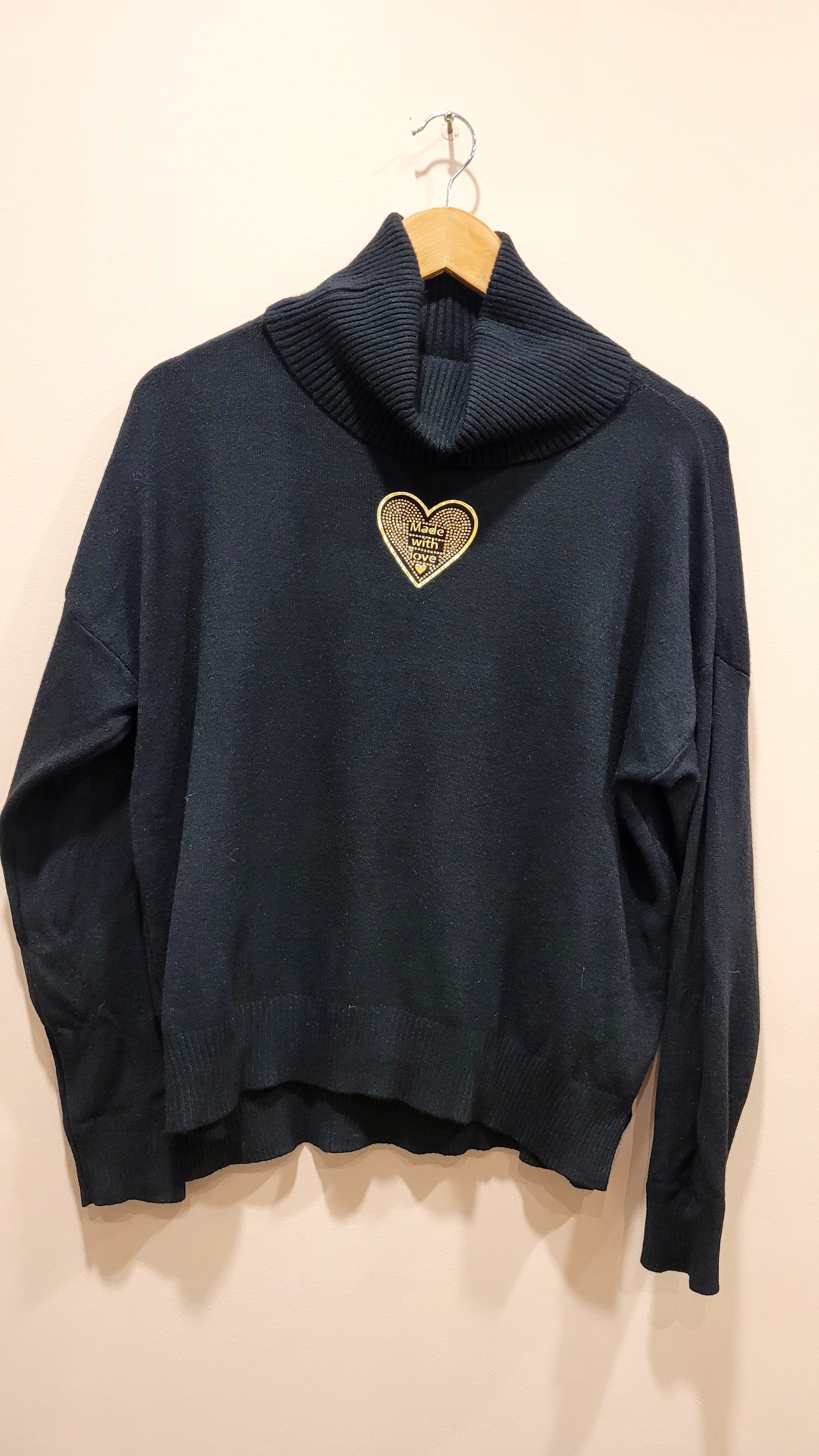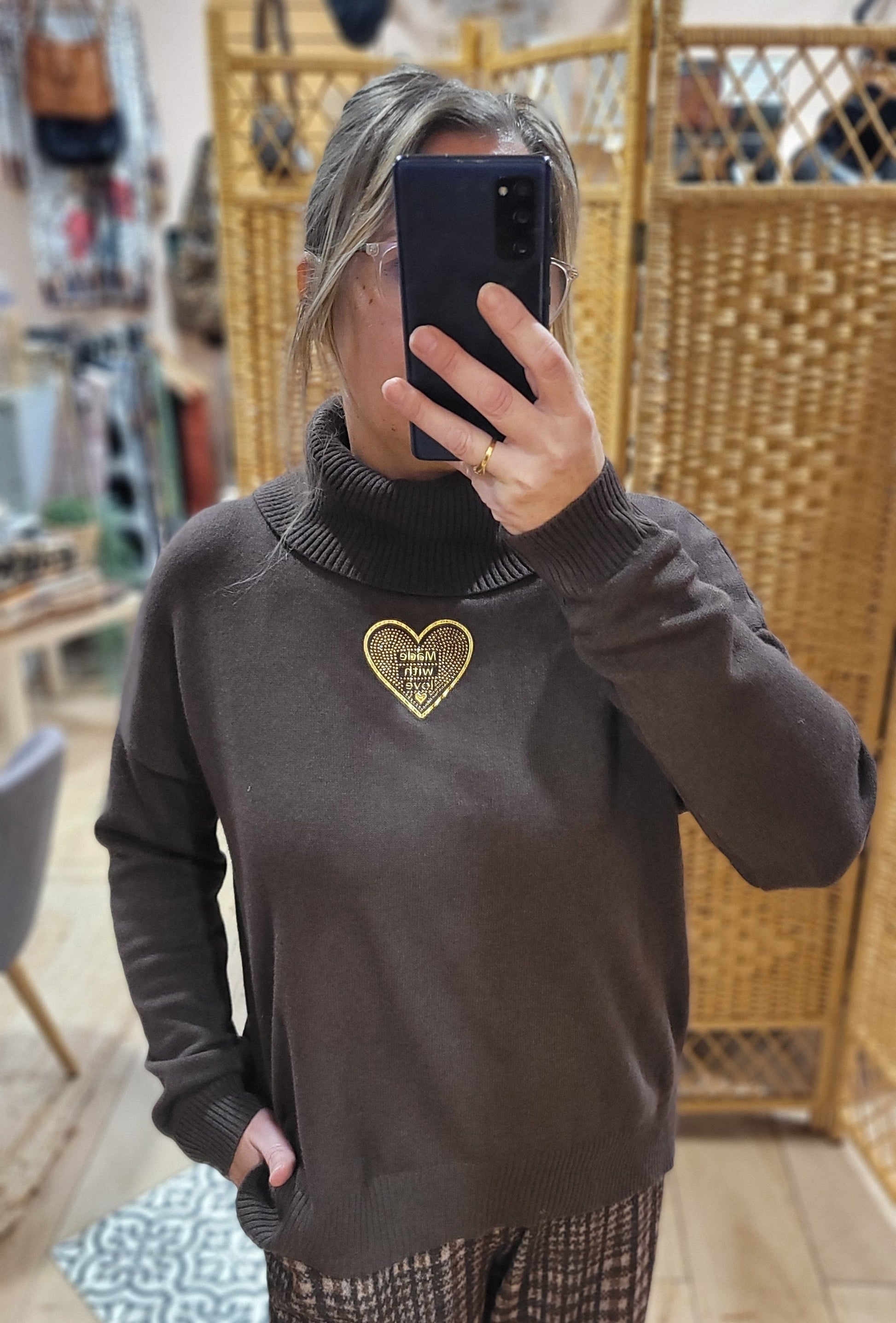 Avec son col roulé, il vous tiendra chaud tout en restant élégant. Sa taille unique convient jusqu'au 44/46 et son motif coeur doré ajoutera une touche de tendresse à vos tenues. Ne passez pas à côté de ce pull unique et craquez pour Julia dès maintenant !