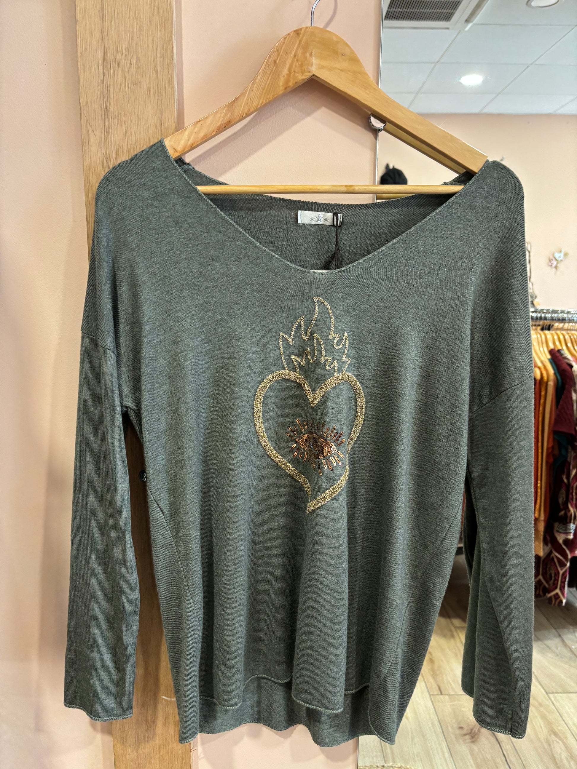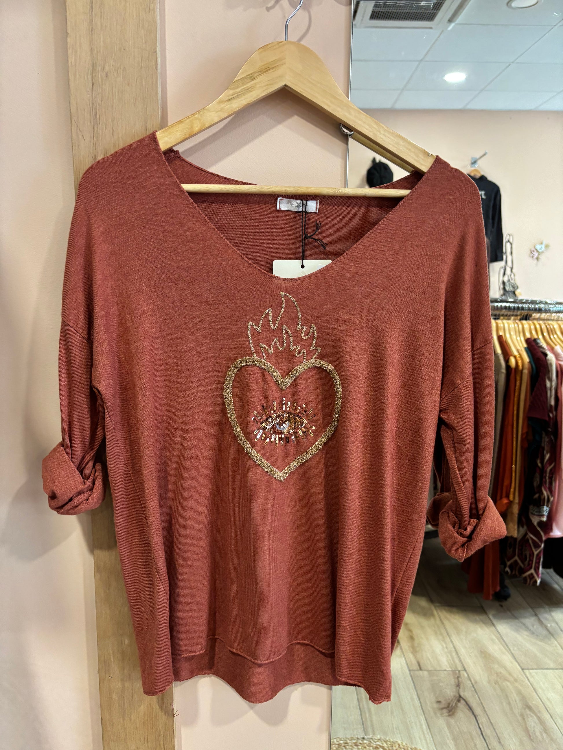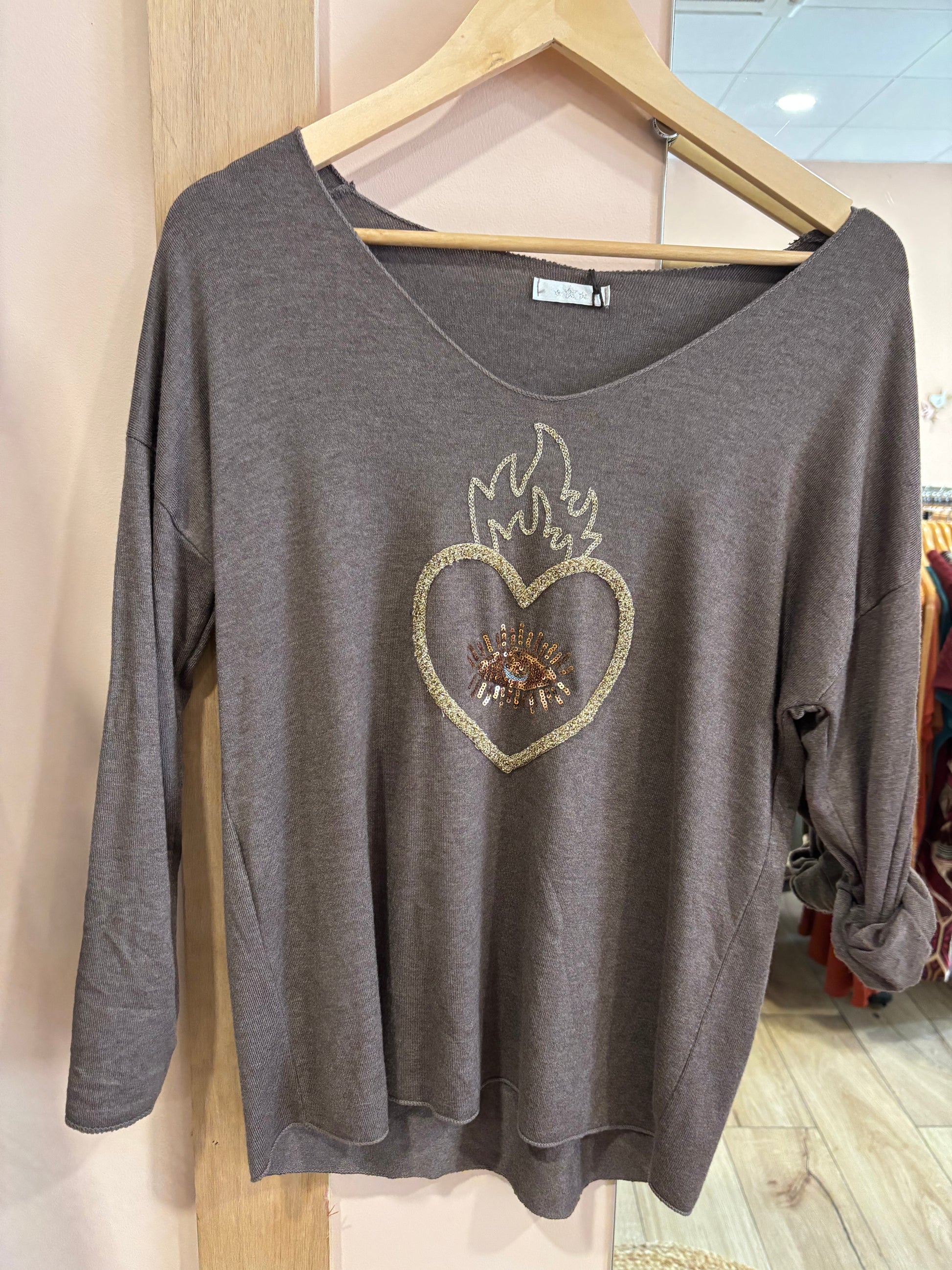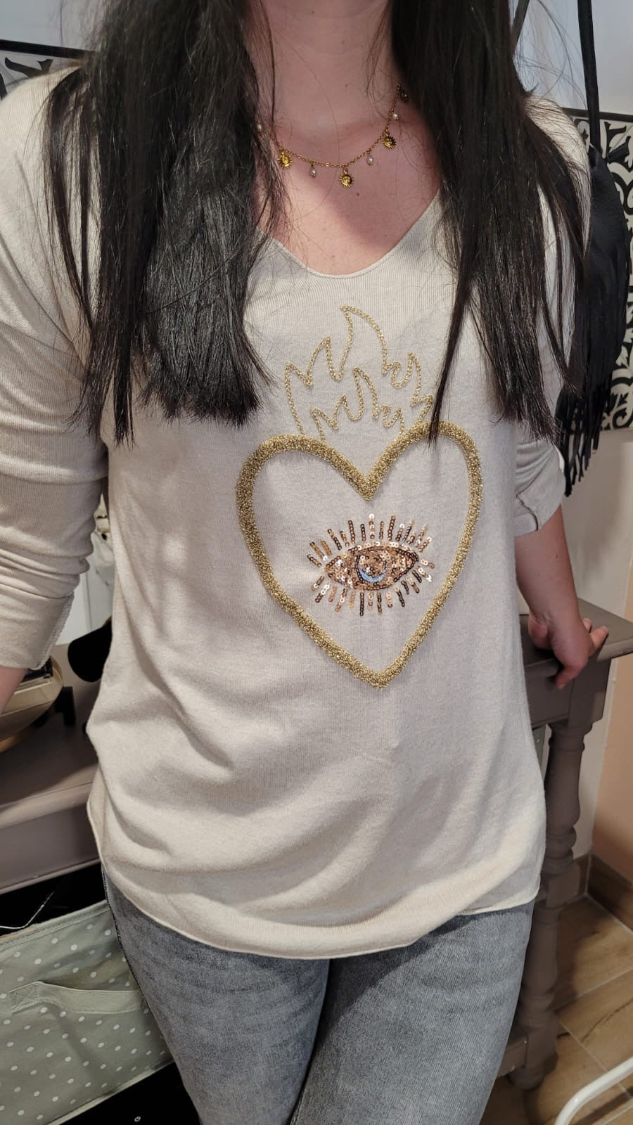 Ce pull fin vous enveloppera de douceur avec sa composition de 52 % viscose, 26 % PBT et 22 % nylon, fabriqué en Italie. Avec son joli cœur enflammé et un œil strassé à l'intérieur, sa taille unique jusqu’au 42 ne passera pas inaperçue. Optez pour un look élégant et original avec le Pull Œil.