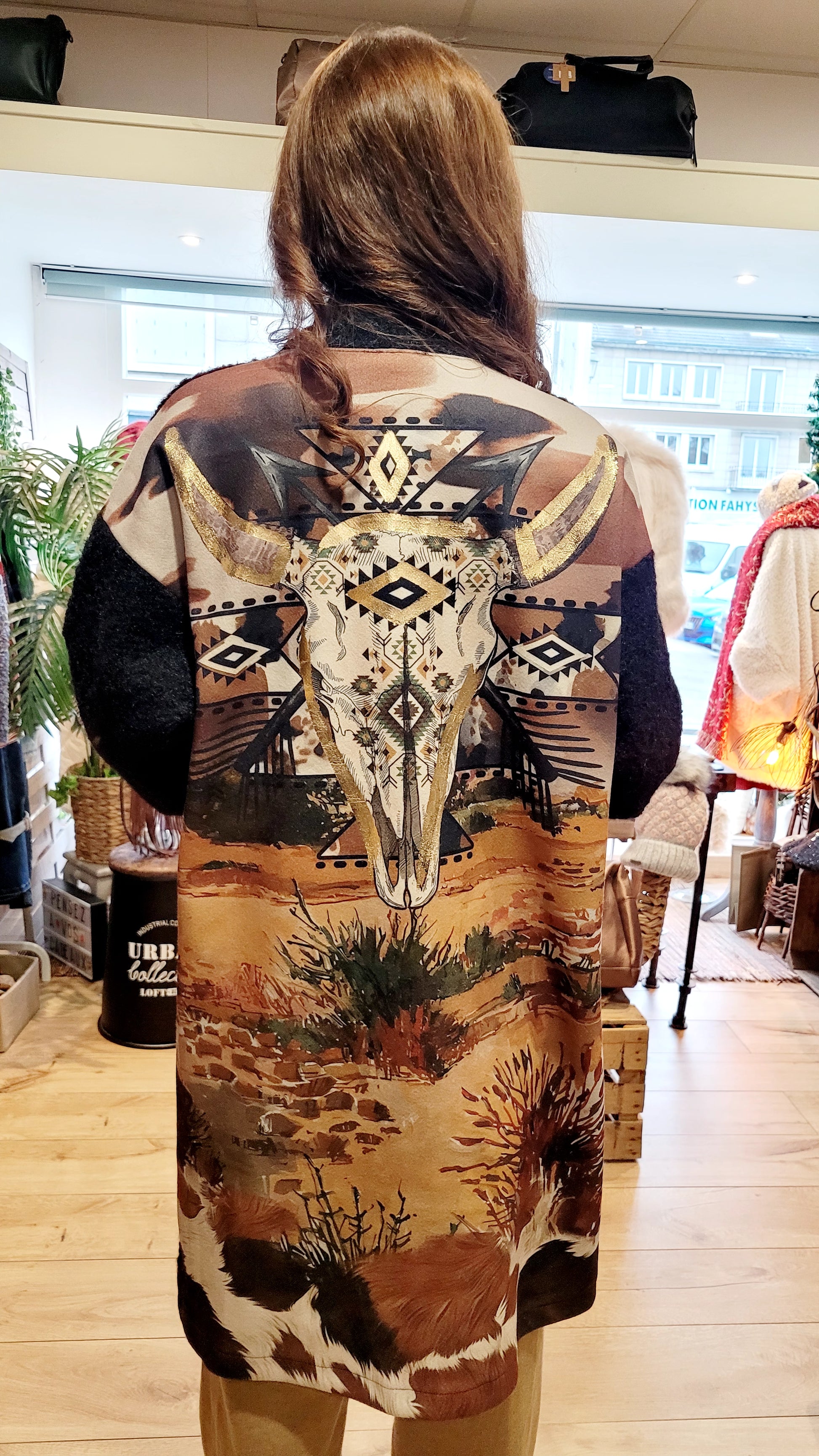 Offrez-vous un style unique avec notre veste Mila ! Faite de deux matières différentes, elle s'adapte à toutes les tailles jusqu'au 46. Unie sur le devant, son motif audacieux au dos vous démarquera avec élégance. 2 poches, sans fermeture.