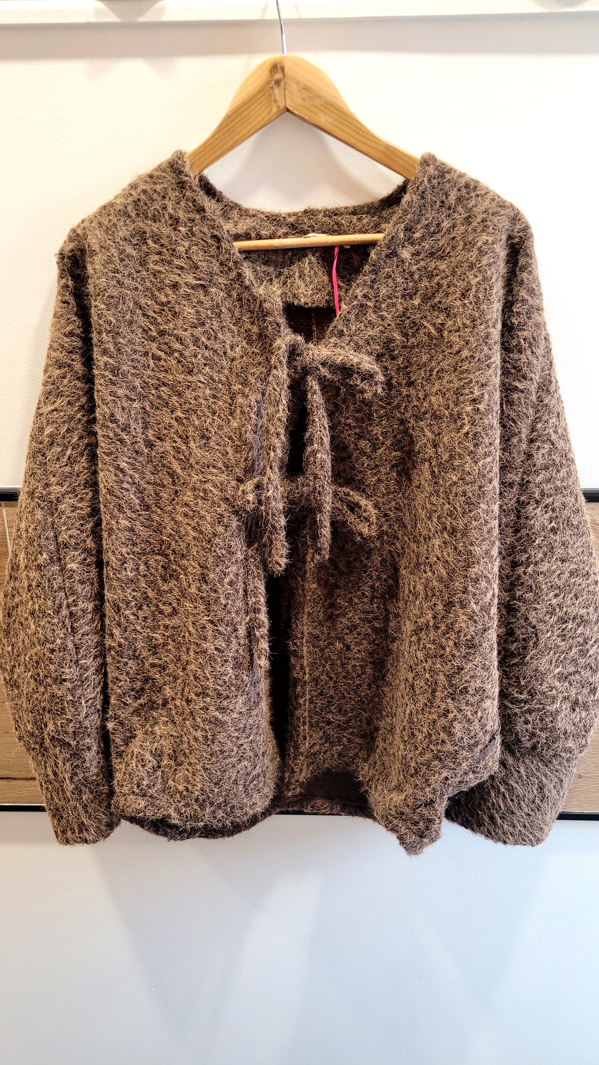 Rendez-vous irrésistible avec notre Veste Nœuds polyvalent! Transformez-la en gilet ou en veste selon vos besoins. Taille unique pour tous jusqu'au 44/46. Fermeture avec liens pour un look moderne et pratique. Avec des poches, toujours prête à rendre service.